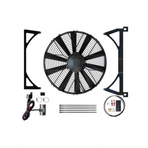 The Revotec Electronic Cooling Fan Conversion Kit typically consists of a Revotec variable temperature electronic fan controller (adjustable from 70-120 deg C), an OEM quality high output, balanced fan, laser cut plated mounting brackets, replacement top hoses, and all necessary hose clips and fittings required.