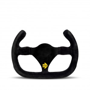 The MOMO MOD.27/C is a racing steering wheel designed for use in single seater or sports prototypes. The flat bottom allows for easier access into the cockpit and cut out top section enables greater visibility of the dashboard and gauges. Finished in black suede, the steering wheel features black aluminium spokes with an undrilled centre section and the yellow MOMO logo. All MOMO racing steering wheels are produced in Italy to the highest quality with anticorodal aluminium frames. The suede or leather covering is glued to the rim, instead of being stitched, to provide a seamless finish for greater comfort and durability.