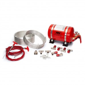 Technical list 16 FIA/MSUK Approved 3.5ltr F-TEC foam fire suppression system with aluminium cylinder and mechanical pull cable activation, supplied with 6 newly developed atomising foam nozzles producing a fine mist resulting in a much larger surface area coverage. The very latest F-TEC foam is freeze protected to -15 degrees and has excellent properties to eliminate re-ignition - 4 nozzles discharge in to the engine bay area and 2 discharge in to the cockpit area.