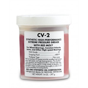 Red Line CV-2 Grease is designed to withstand the extreme temperatures and pressures which occur in high-performance wheel bearings and CV-joints. The excellent hightemperature stability, extreme-pressure protection, and water resistance enables it to out-perform even the best conventional or synthetic greases. 397g tub.