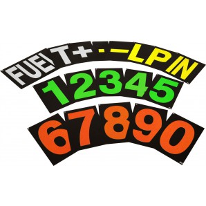 The number set for the standard pit board kit includes 38 numbers, letters and symbols.