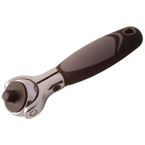 Compact 1/4"D swivel head ratchet with rubber grip and spinner action for quick release. Professional quality. Ideal for confined spaces and hard to reach areas